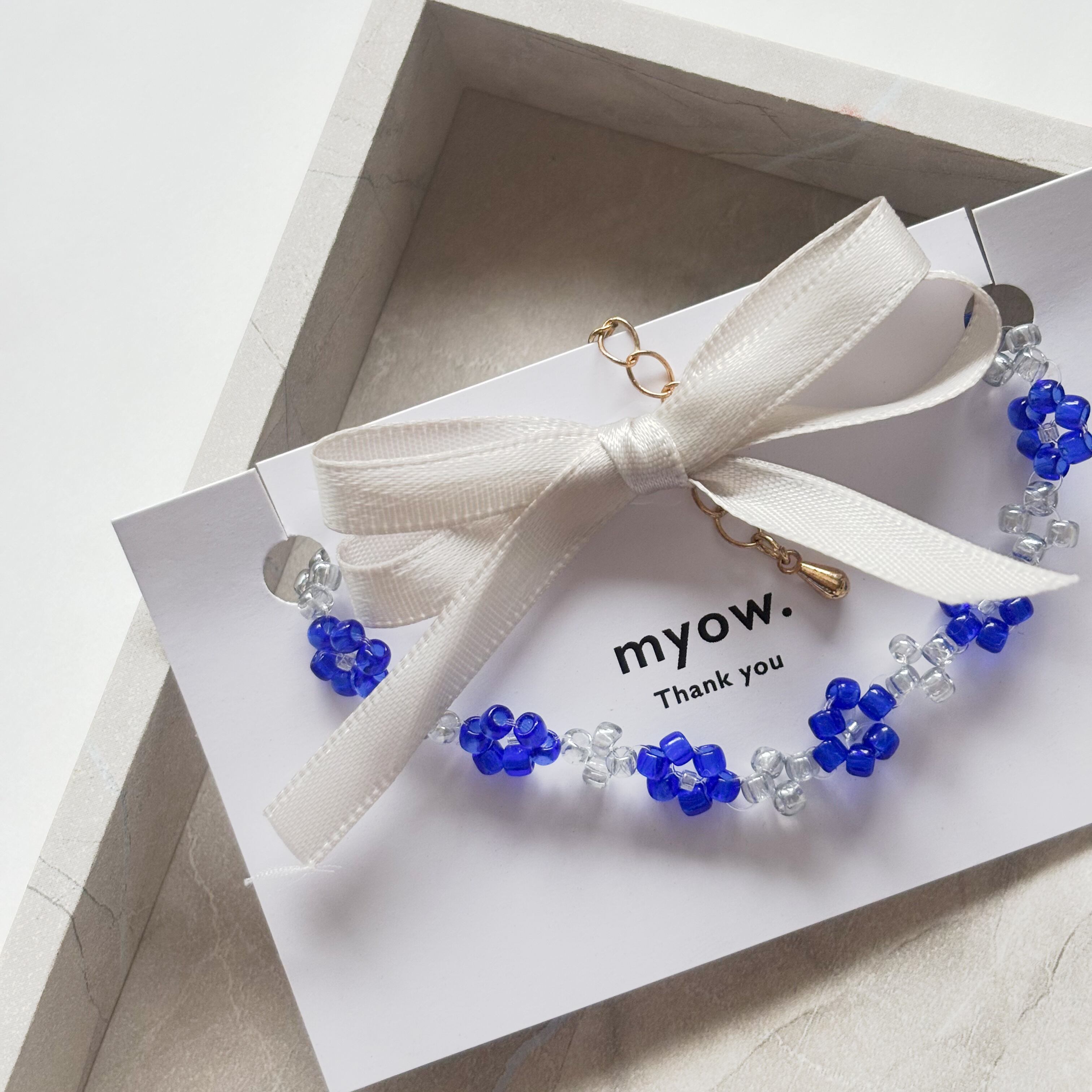 青と透明のビーズがきらめくブレスレット “Mare(マーレ)”。