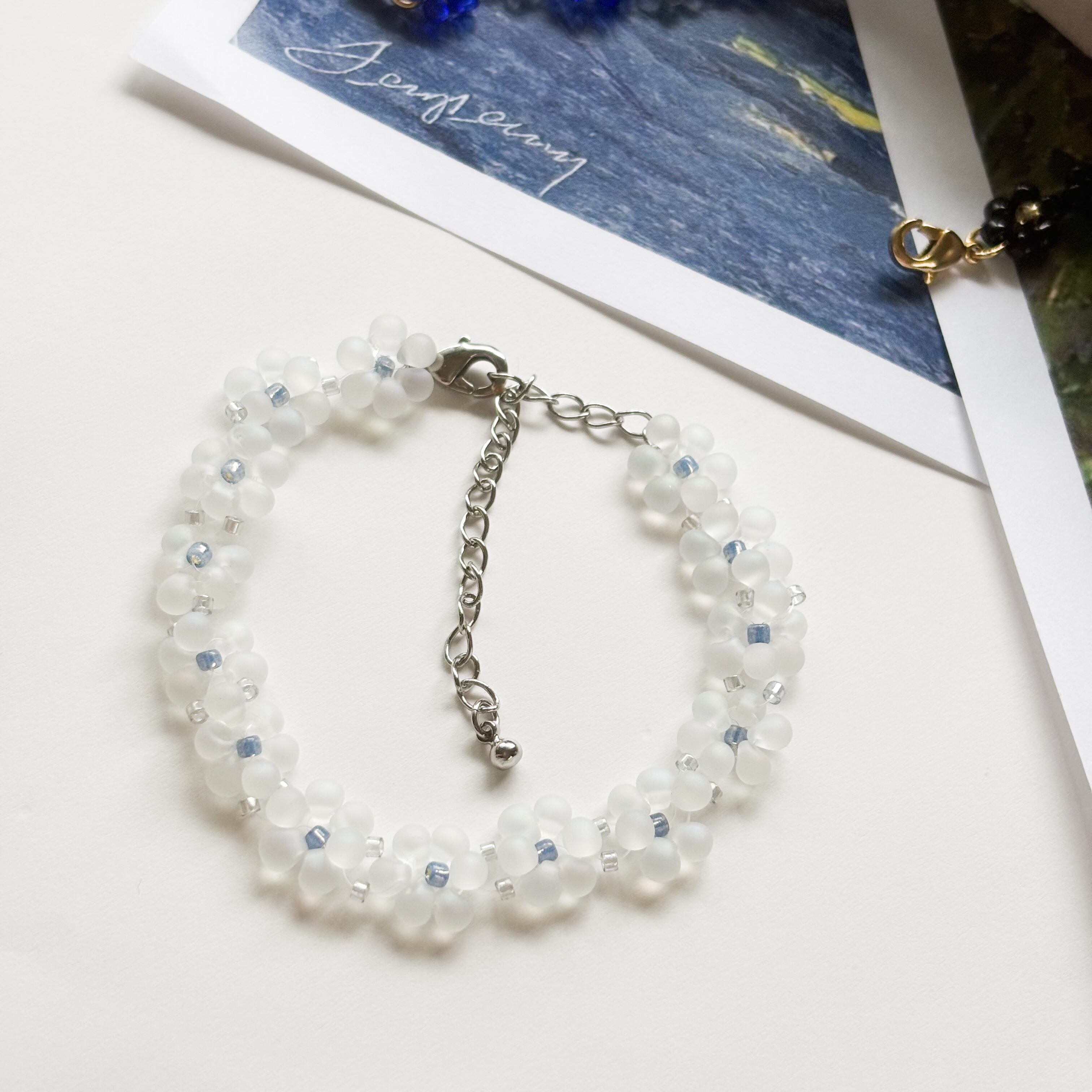 Neige – 白いビーズのフラワーブレスレット